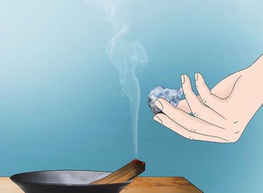 Smilkyti. Užsidekite smilkalą ar Palo Santo lazdelę, atsisėskite ramioje vietoje ir į vieną ranką paėmę akmenį, į kitą ranką - smilkalą, jį smilkykite. Taip išvalysite visą sukauptą negatyvią energiją. Atlikdami ritualą paprašykite šventųjų dūmų, kad jie išvalytų mineralų energijas. Taip pat paprašykite mineralų išleisti energiją, kurią jie laiko.