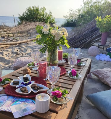 Visų dirbtuvių metu mus lydės mėlynojo lotoso, kristalų, eterinių aliejų, smilkalų, ugnies, garsų, kortų ir žinoma mūsų energijos.